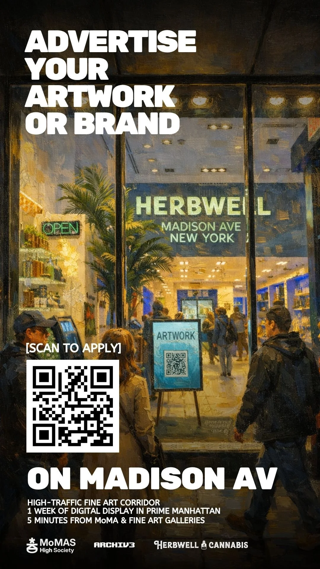 The New Renaissance at Mo’MAS High Society inside Herbwell was a living answer to “what’s next?” Set along Madison Avenue’s historic art corridor, hundreds of artists, collectors, streamers, and tastemakers gathered for a night that felt less like an event and more like the start of something bigger.